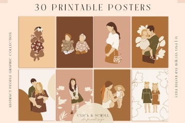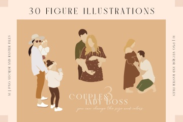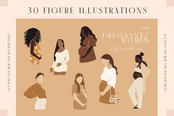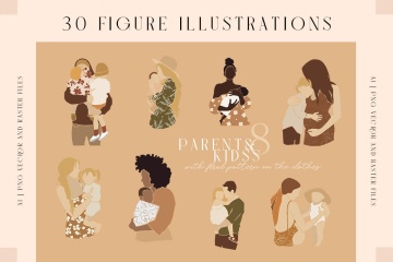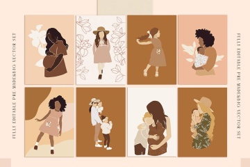 图穷联素材库 » 温馨准妈妈婴儿孩子父母场景插画合集包 Abstract Fa