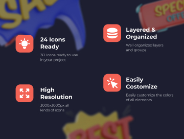 商业上是一组适用于任何产品的自定义 3D 图标。此包将完美补充您的应用程序、演示文稿、网站等的设计。该套件包括贴纸,例如:SALE、BLACK FRIDAY、SPECIAL OFFER、SPECIAL EDITION、CASH BACK、SHOPPING DAY、BEST 等。创建令人惊叹的独特项目使用这些手工制作的图标,可以在 Figma 中轻松编辑,并在 Blender 中完全自定义。