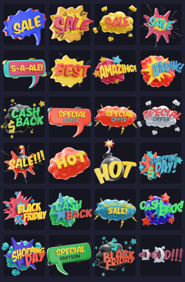 图穷联素材库 » 高品质三维渲染电商网站活动3D促销语插图素材合辑 SALE!