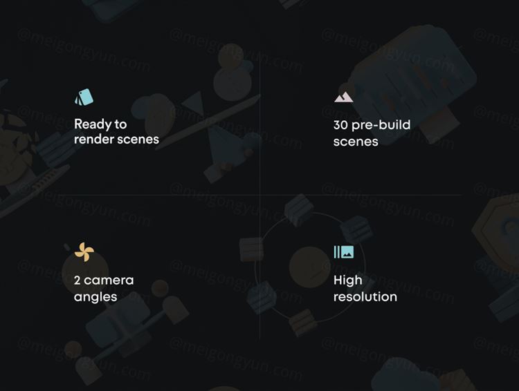 从具有 2 个摄像机角度(前视图和等距视图)的 15 个不同场景中进行选择,或者混合搭配不同的对象,在您最喜欢的 3D 程序中创建自己的场景。