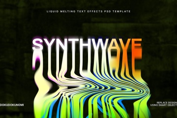 潮流80年代复古液化失真迷幻字体特效PSD模板 Liquid