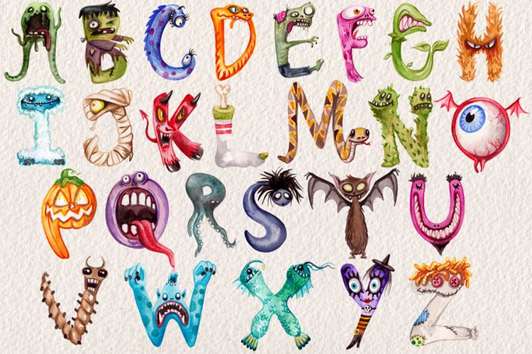 图穷联素材库 » 26个水彩手绘怪物字母剪贴画插图合集包 Watercolor