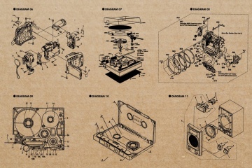 旧磁带、唱机、电视机、相机、镜头、投影仪、耳机、摄像机、扬声器和便携式立体声盒式磁带播放器都包含在该系列中。