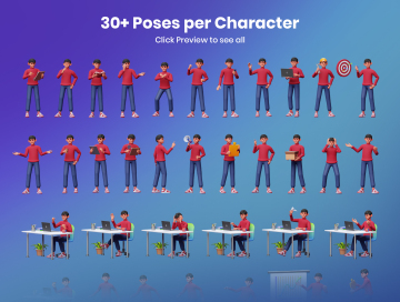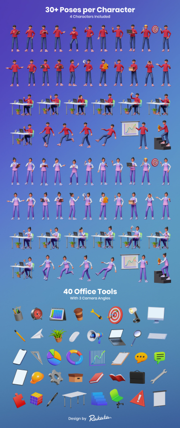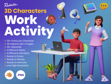 3D 角色工作活动包,每个角色有 30 多个姿势和 40 个 3D 对象。