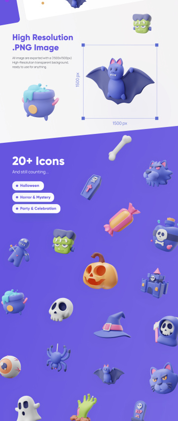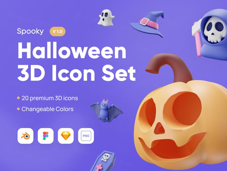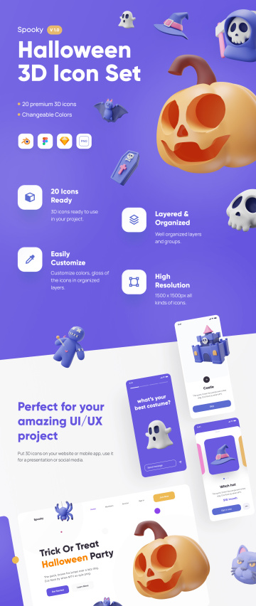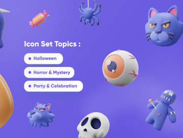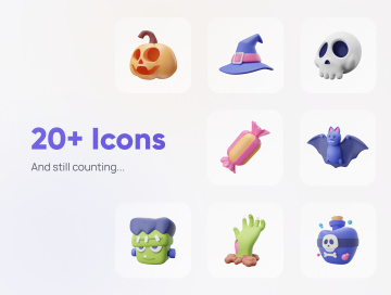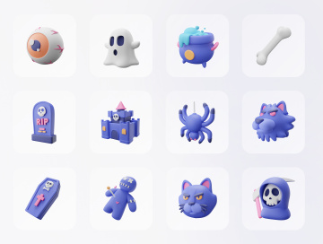 Spooky 是一组适合万圣节的自定义 3D 图标。使用 3D 图标让您的下一个产品和项目更加精彩。