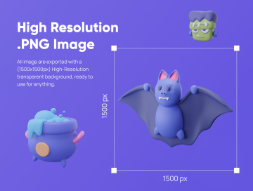 图穷联素材库 » 三维渲染卡通万圣节恐怖主题3D插画图标集 Spooky -