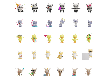 图穷联素材库 » 三维渲染5种3D卡通呆萌动物原型插画 ANIMALZ - c