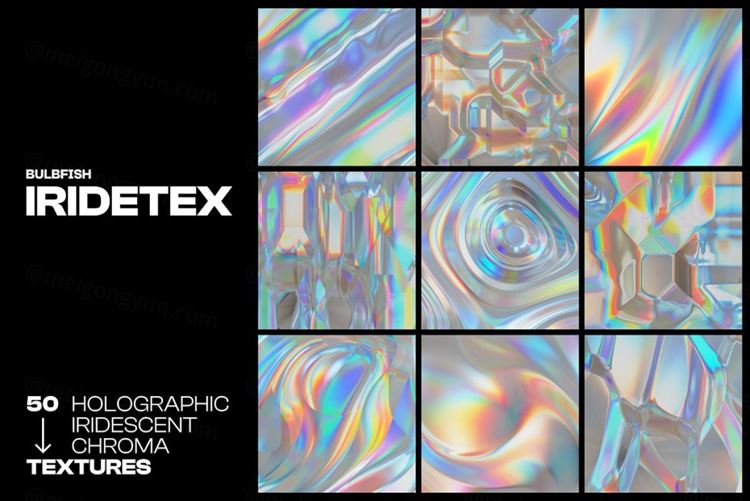 图穷联素材库 » 新复古未来派科幻全息铬合金渐变纹理素材 Iridetex -