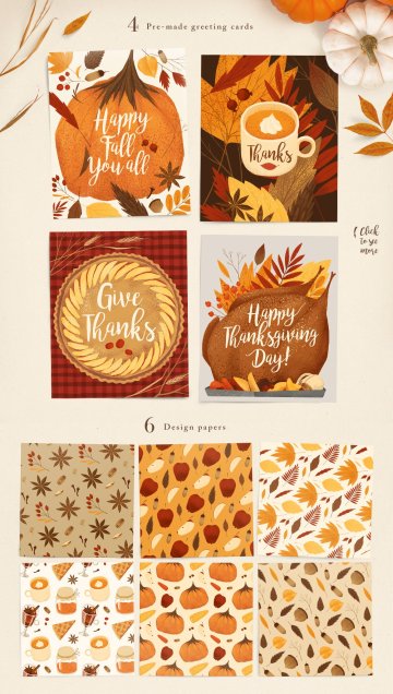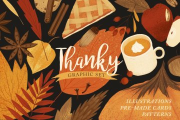 手绘秋季感恩节秋天假期装饰主题插画素材集 THANKY gr