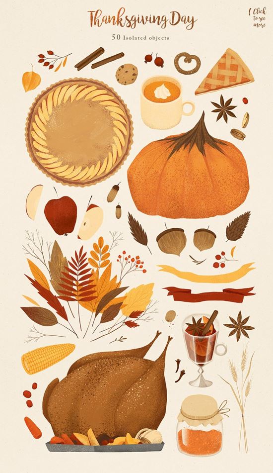 图穷联素材库 » 手绘秋季感恩节秋天假期装饰主题插画素材集 THANKY gr