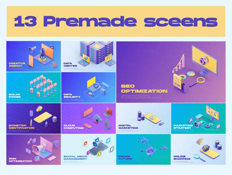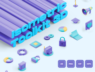 Animated Toolkit 3D Use 非常适合社交媒体设计、广播设计或专业视频解说员。惊人的 3D 设计吸引注意力并极大地影响您的跳出率。将其用于 YouTube、Instagram、Facebook 和电视制作动画故事、海报、开场白和应用程序。它专注于一种风格的交流设计:明亮的颜色组合、简单的形状、干净的排版和适合任何框架方向的构图,以在任何现代设备上提供更好的用户体验。