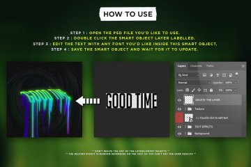 图穷联素材库 » 复古迷幻故障艺术液化文字特效PS模板 Liquid Melt