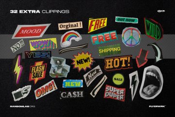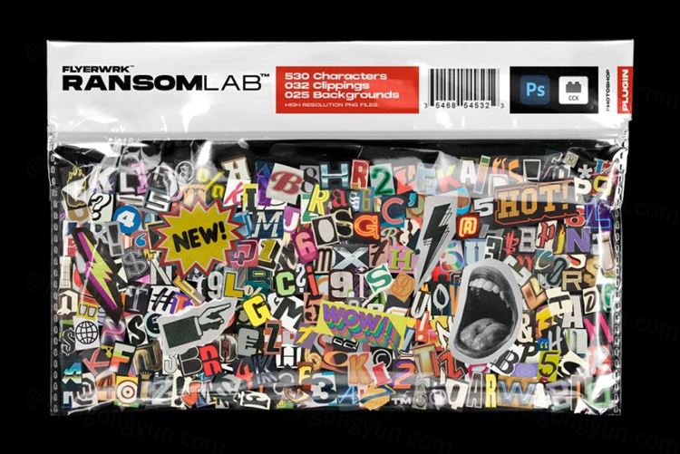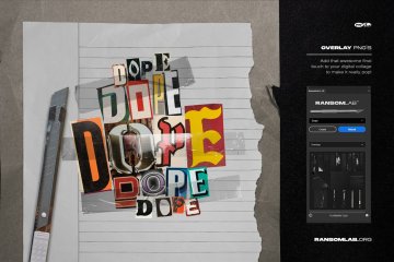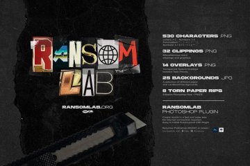 多合一包 使用 Photoshop 插件和 Ransomlab 套件,您拥有制作有趣拼贴、复古设计、匿名笔记等所需的一切。