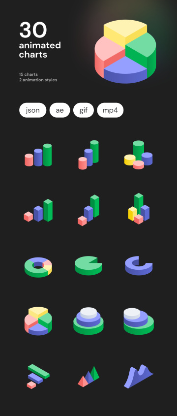30 个动画图表:15 个图表 2 个循环动画样式。