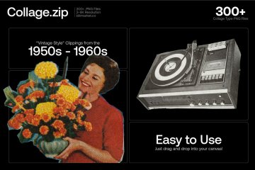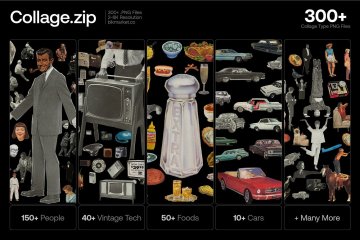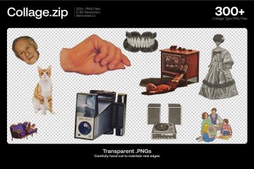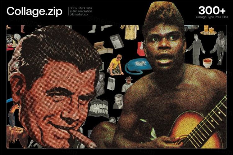 100 多种手工剪裁的拼贴剪报,来自原子时代的老式杂志。为任何设计添加即时复古风味,或直接在 Photoshop 中构建自定义拼贴风格的艺术品。每个资产都用精确的刀手工切割以获得最逼真的拼贴外观,然后以高分辨率扫描并以数字方式隔离。这个包包括人、老派技术、随机物体、食物、动物、摘要等。