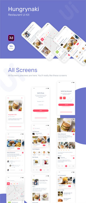 ungryNaki Restaurant App是一款干净时尚的Adobe XD模板,采用全宽度方法设计。HungryNaki餐厅应用程序是一个在线食品订购应用程序,将启动您的业务。通过独特和互补的唯美主义布局等方式给您的用户留下深刻印象。