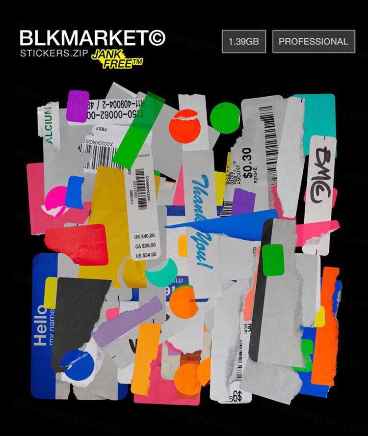 图穷联素材库 » 高分辨率潮流复古做旧撕裂废弃贴纸标签PNG合辑 Sticke