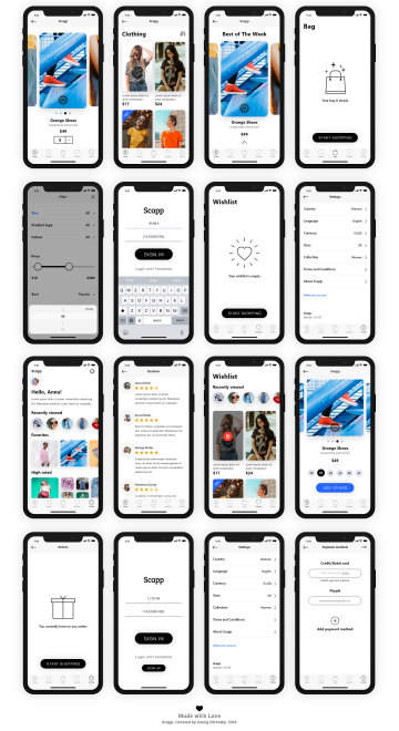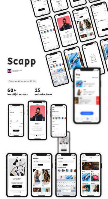 Scapp是一款用Adobe XD制作的电子商务UI工具包,非常适合iPhone X.它现代,干净,优雅。Scapp让您激励and并帮助您构建自己的iOS应用程序。您可以轻松地使用任何屏幕或将此组中的元素组合在一起。您还可以更改颜色并放置图像。