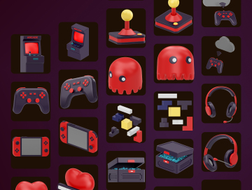 图穷联素材库 » 三维渲染卡通游戏机耳机主题设计元素合集包 Gaming 3D