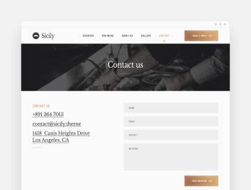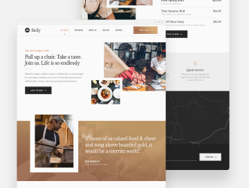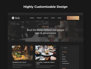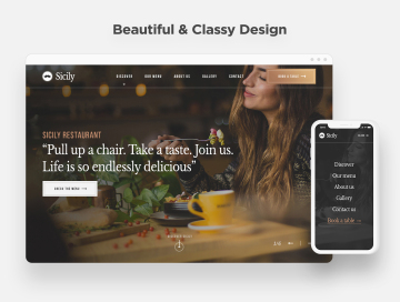 西西里岛是餐厅的豪华模板。它配备了一系列元素,旨在帮助您构建您的餐厅应得的豪华网络体验。