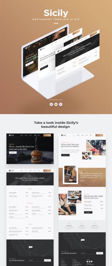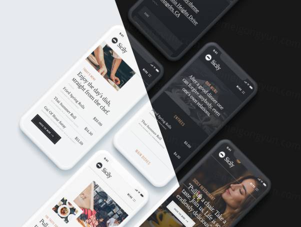图穷联素材库 » 西西里岛豪华餐厅主题Web网页UI设计工具包 Sicily Web UI Kit