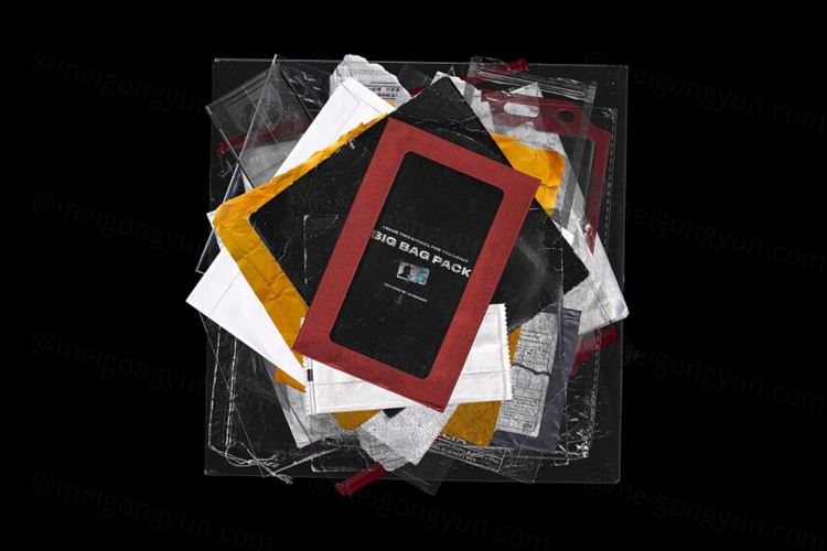 图穷联素材库 » 潮流复古做旧艺术透明塑封袋纸张光碟纸袋快递袋设计素材合集 V
