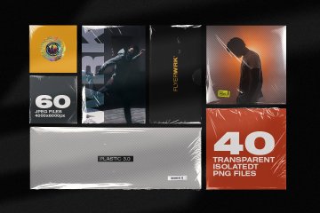 2019 年 10 月更新:透明 PNG 中的 +20 种新塑料纹理 +1 乙烯基唱片 .PSD 样机