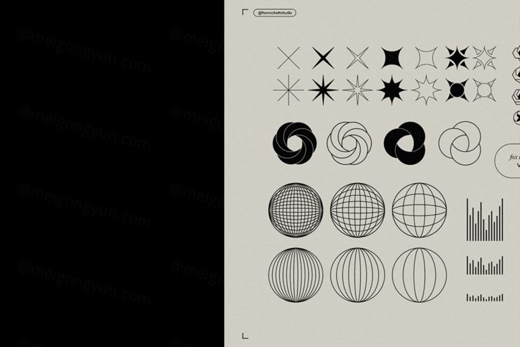 图穷联素材库 » 80+未来派科技抽象矢量形状素材 Fox Rockett S