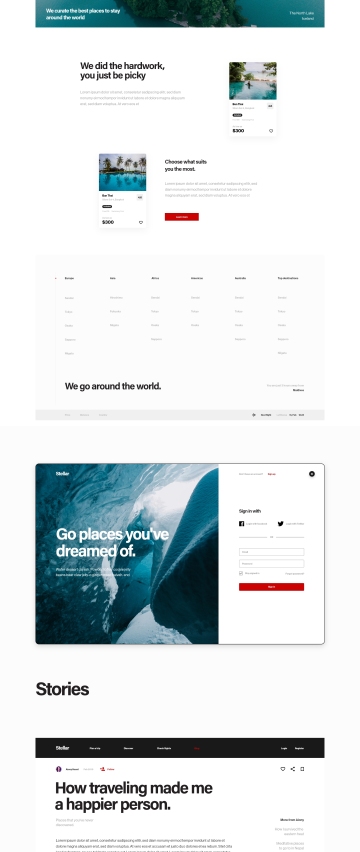 Stellar是一个UI工具包,包括20多个精美的手工制作的屏幕,现代,干净和独特。网络包包括预订机票,发现地点,博客,酒店预订,旅游和航班搜索。