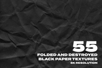 55张8K分辨率有折痕损坏废旧的黑色纸张纹理素材 8K De