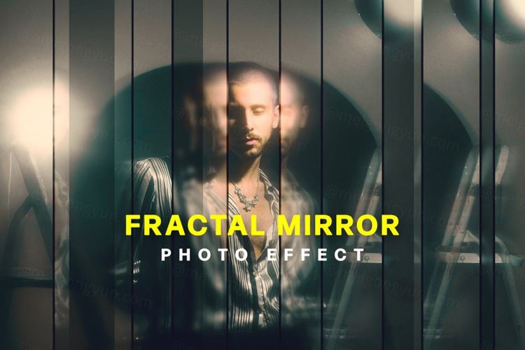 图穷联素材库 » 高质量分形镜面玻璃模糊位移特效PS模板 Strip Frac