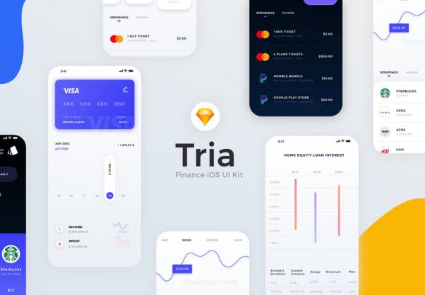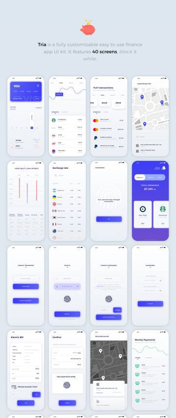 图穷联素材库 » 金融投资管理服务移动APP平台界面设计UI工具包 Tria Finance Ap
