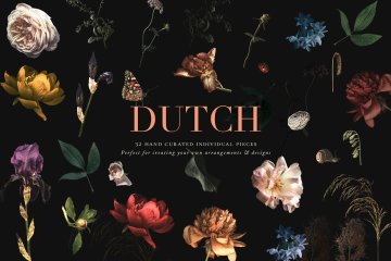 对于这一套,我们显然受到了荷兰花卉画的启发。我们喜欢这套深沉的传统色彩。该系列中的某些元素已变暗,以便您可以为您的设计和安排增加深度。此剪贴画的工作原理与普通剪贴画一样,并且可以根据您的喜好排列各个元素。艺术品在较暗的背景下看起来最好。使用此套件创建邀请函、设计博客、网站或徽标等。