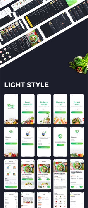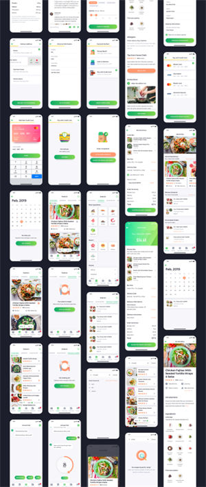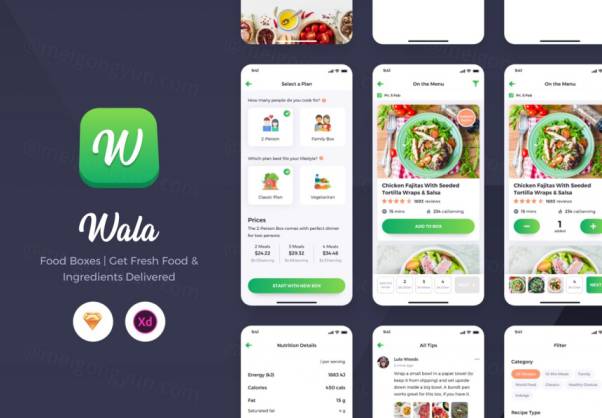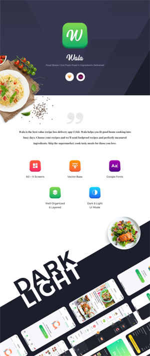 图穷联素材库 » 酒店饭店食谱菜单系统在线点餐移动APP系统界面设计UI工具包 Wala Food