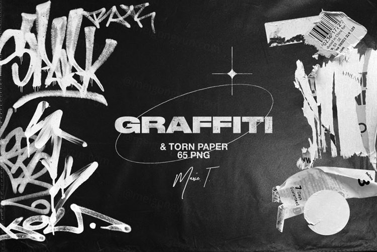 图穷联素材库 » 复古做旧艺术涂鸦喷漆撕纸磨损废旧风设计素材 Graffiti