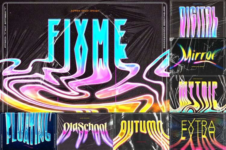 潮流酷炫液体融化流体迷幻老派风格文本特效模板 Liquid