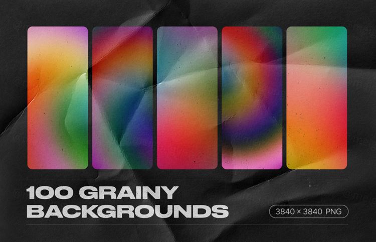 100 个高分辨率渐变背景,带有定制的颗粒纹理(3840 × 3840px,PNG,兼容任何图形编辑软件)