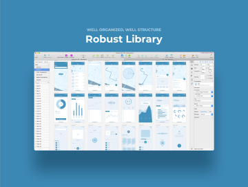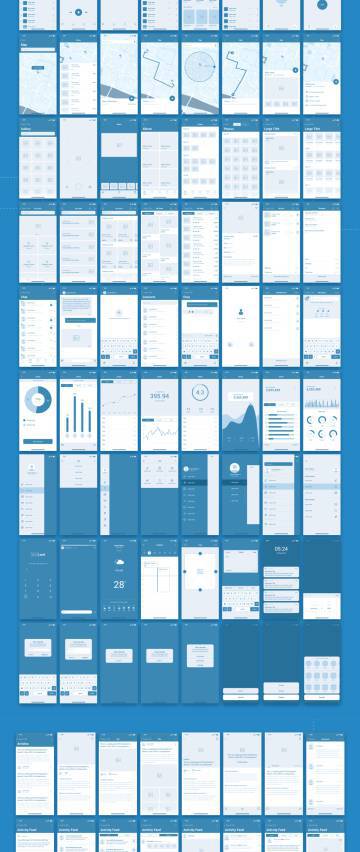这个线框工具包可以很容易地适应您项目品牌的视觉语言,只需在一个地方更改颜色和排版,所有屏幕将自动更新。