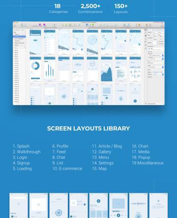 适用于iOS的Wireland - 是一个完整的线框库集合,经过优化,可以非常快速,轻松地设计和构建iOS应用程序项目,同时获得出色的结果。该库包含144个即用型屏幕布局,分为18个热门类别。