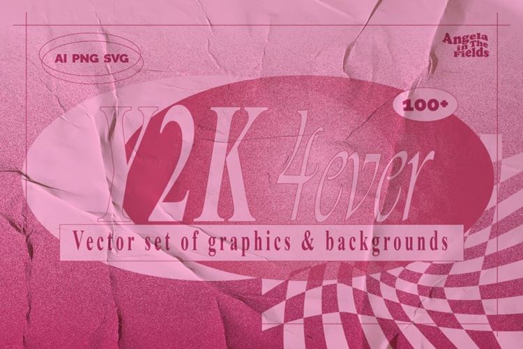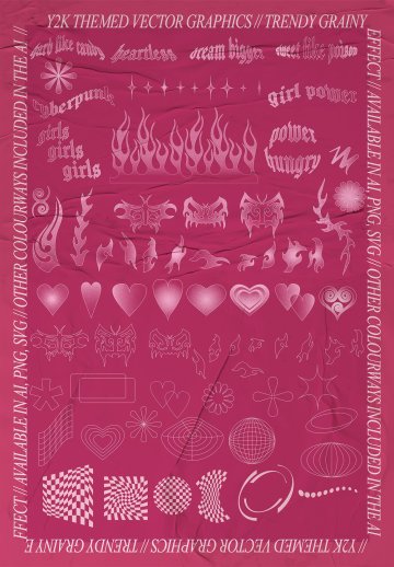 这套几乎适合您想到的任何 Y2K 主题项目:社交媒体图形、文具、海报、墙壁艺术等。它在色板中带有预制的调色板,因此您可以交换颜色并玩弄令人发指的最近风靡全球的美学。