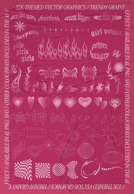 图穷联素材库 » 复古千禧年粉色美学酸性艺术图形砂砾磨砂背景纹理素材合辑 Y2