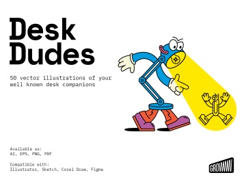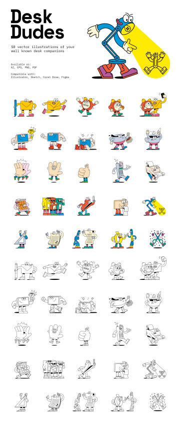 图穷联素材库 » 50张办公桌办公用具搞笑插画矢量插图 Desk Dudes