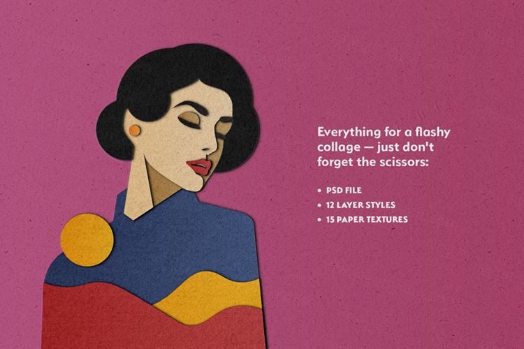 复古纸张纹理剪纸拼贴画图片效果PSD样式模板 Scissor