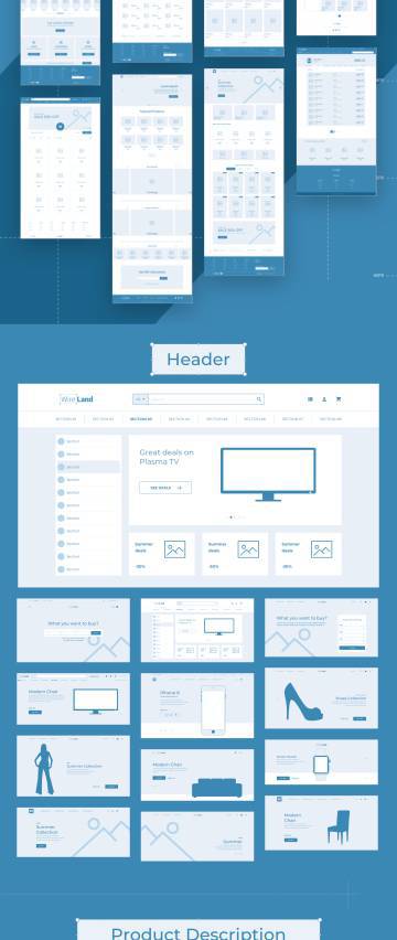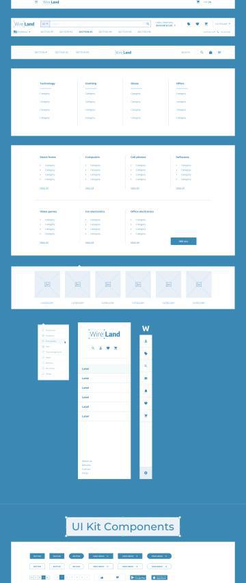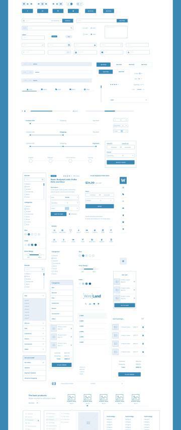 图穷联素材库 » 【Ecommerce篇】完整的电商网页平台线框原型库UI工具包 Wireland