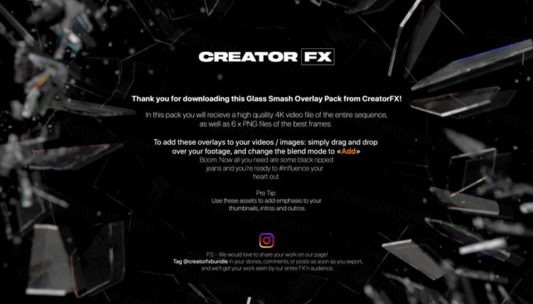 应大众需求,我们将标志性的 Glass Smash Overlay 推向市场。 使用 4K Glass Smash Overlay Pack 强调和集中注意力。