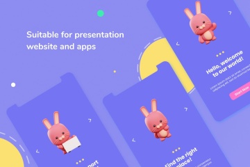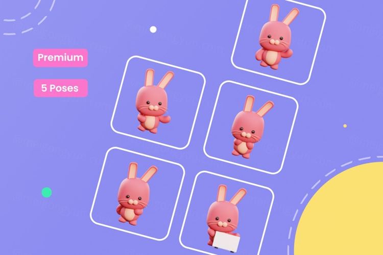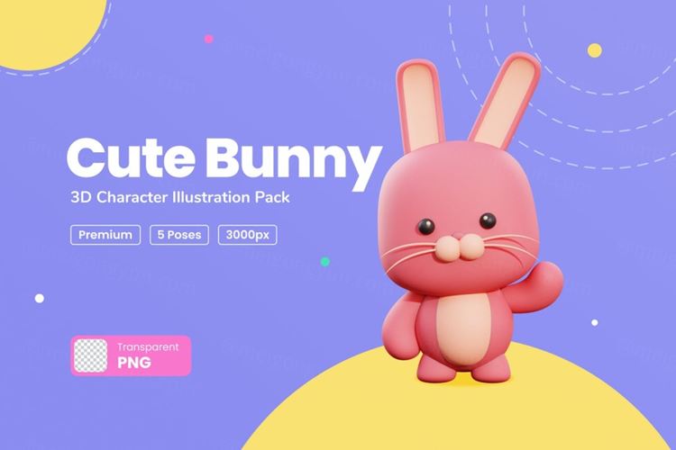 图穷联素材库 » 三维可爱兔子卡通形象插画素材 Cute Bunny 3D C