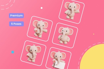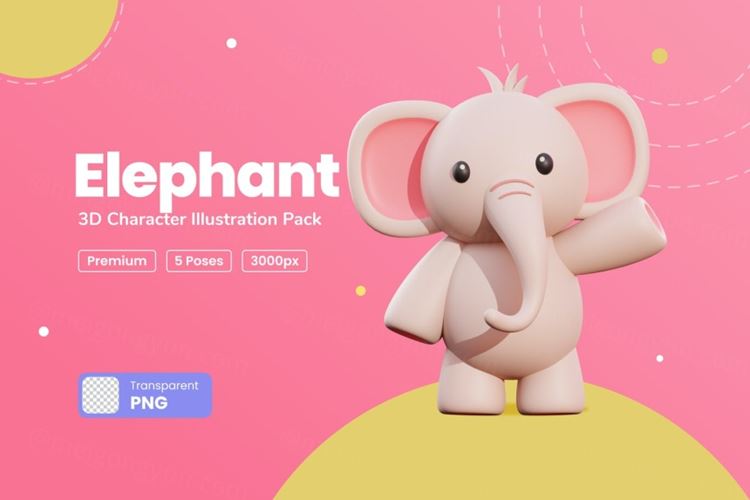 三维可爱小象卡通形象插画素材 Elephant 3D Cha