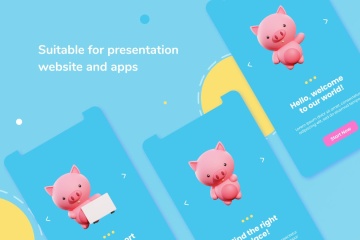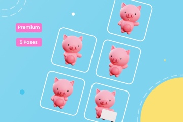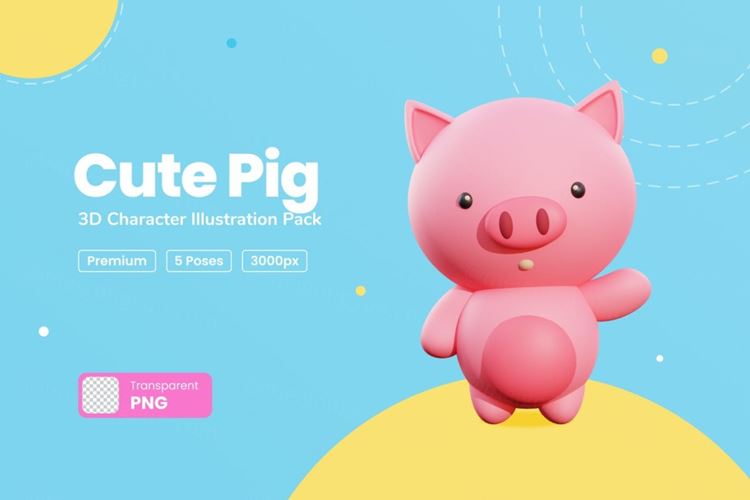 图穷联素材库 » 三维可爱小猪卡通形象插画素材 Cute Pig 3D Cha