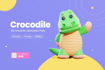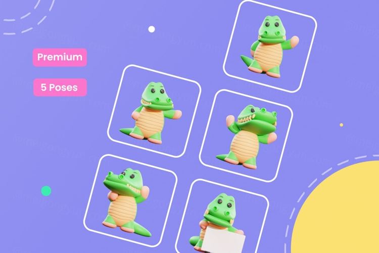 图穷联素材库 » 三维可爱鳄鱼卡通形象插画素材 Crocodile 3D Ch