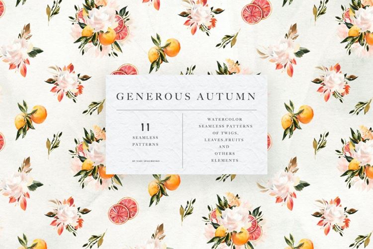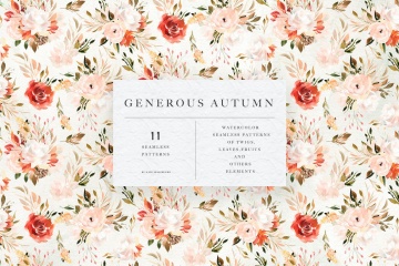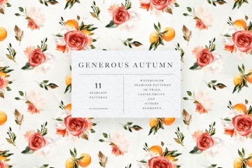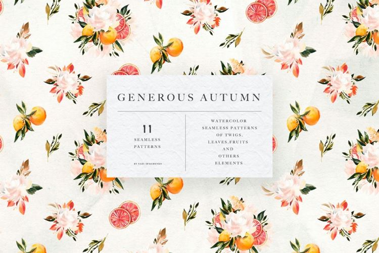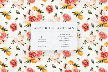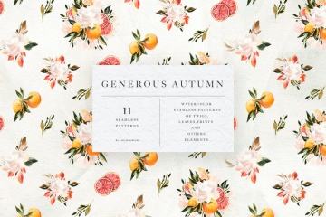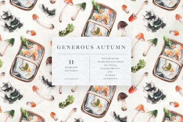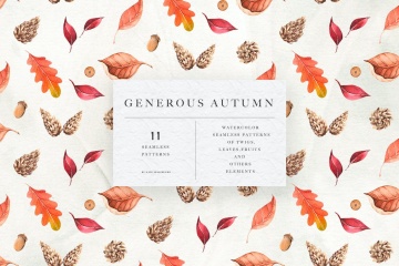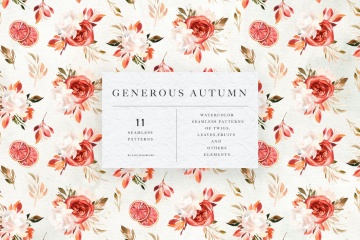 11 款以秋季为主题的明亮多汁图案。这些是红色的花朵、水果、树叶、蘑菇和其他一些舒适的细节。您可以在适当的情况下为织物、纸张和许多其他项目使用图案。